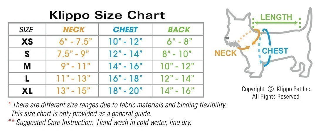 Super cute "Silly Monkey" face expressions all over this soft fleece pajamas. Extended collar can be worn as a turtleneck or folded down.  Extended sleeves for dogs with longer legs and can also be folded up.  A functional pocket on the back and an attached large D-ring for easy leash attachment.  A small D-Ring attached above the first snap button to add on a "Klippo" charm or ID tag!  (Each outfit comes in its own Klippo logo charm.)